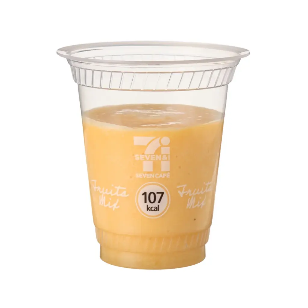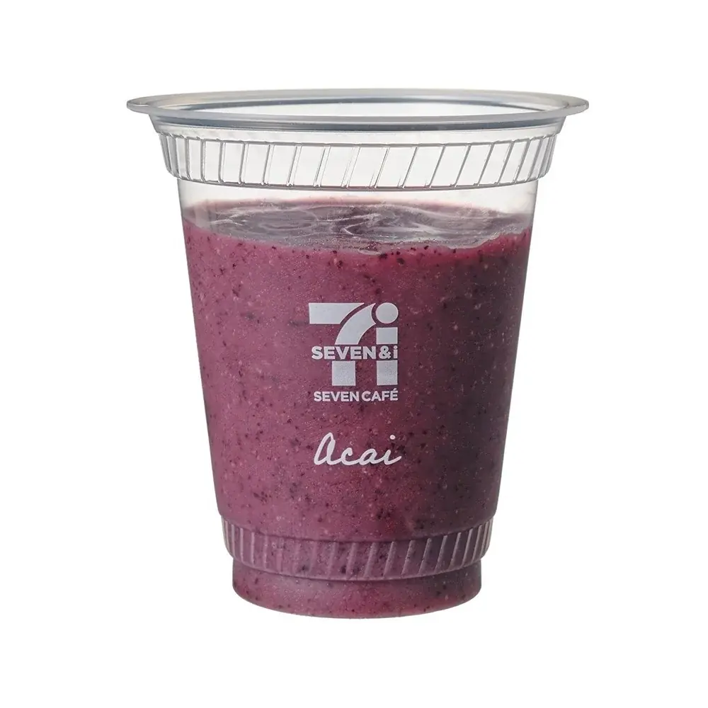 「セブンカフェ スムージー」は、素材の風味を引き出すために急速凍結を用いて果物や野菜の水分・鮮度を閉じ込める方式を採用しています。ピューレなどを独自技術で凍らせアイスキューブ化し、専用マシンで商品ごとに適した時間と速度で撹拌することで、素材の味を活かした食感と風味を実現しています。