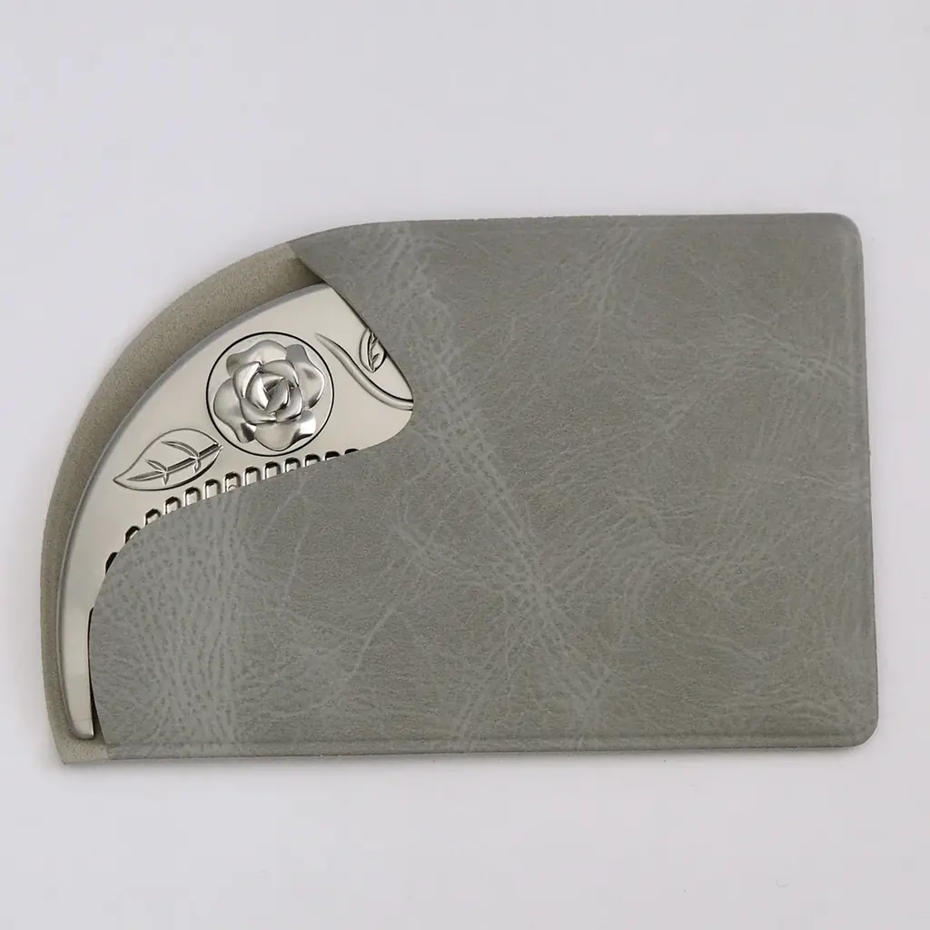 デザインは日本古来のつげ櫛をイメージした和モダンな仕上がりで、持ち手部分には福山市の象徴である「つるバラ」のレリーフを繊細に施しています。つるバラの意匠は本体にも反映され、和洋いずれの装いにも馴染む上品さを持たせています。