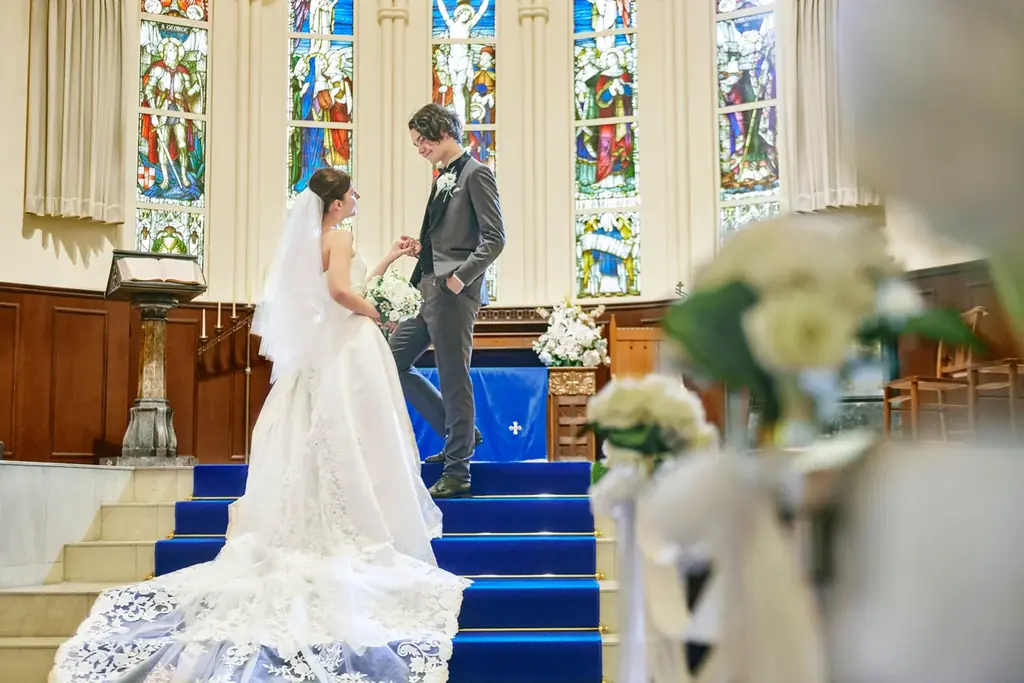 本メニューは、提供スタイルを従来からリニューアルし、より華やかな3段スタンドでの提供に改められました。結婚式場併設という特性を生かし、白いドレスや結婚指輪、フラワーシャワーなど“花嫁”を象徴するモチーフをスイーツ・セイボリーの随所に取り入れています。みなとみらいの景色と合わせて、非日常的なティータイムを演出する仕様です。