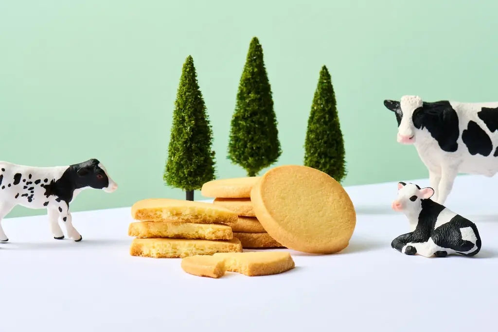 - あさぎりバターと国産小麦、卵を使用したバタークッキー。サクッと崩れる食感とバター風味が特長。