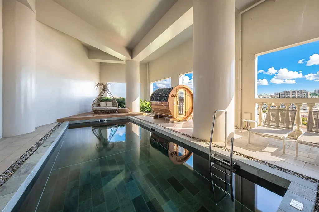 導入されたバレルサウナは、客室内で完結する“サウナ×プール×天然温泉”という滞在設計を柱に、滞在者が時間や周囲を気にすることなく心身のリラクゼーションに没入できる仕様です。沖縄の風と木の香り、天然温泉が一体となる環境を、客室というプライベートな空間で提供します。