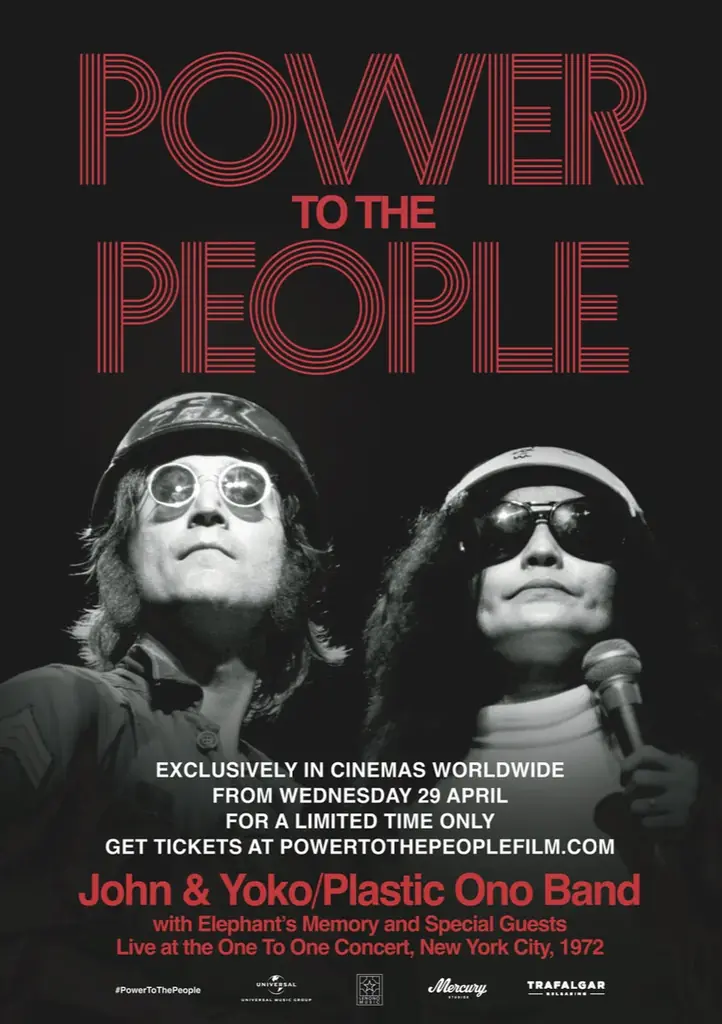 ジョン・レノンがザ・ビートルズ解散後に行った唯一のフル・コンサート「ワン・トゥ・ワン・コンサート」を、最新技術でレストア・再編集・リミックスした映画『パワー・トゥ・ザ・ピープル:ジョン&ヨーコ・ライヴ・イン・NYC』が、2026年4月29日(水・祝)に世界同日で劇場公開されます。配給および発表はカルチャヴィル合同会社によるもので、発表日時は2026年4月21日21:00です。