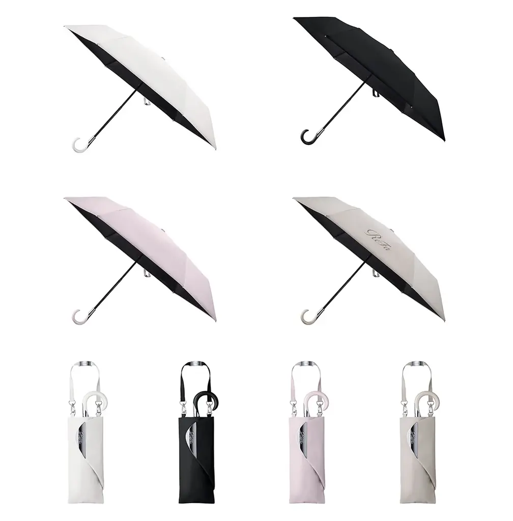 3段折りたたみのコンパクトモデルは携帯性を最優先するユーザーを想定しています。バッグ内での収納性を高めつつ、外出時の美しさを守る機能はしっかりと保持しています。こちらもポーチが付属します。