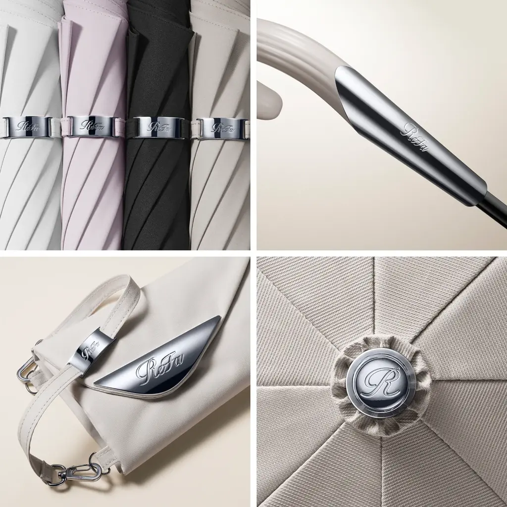 ReFa SUNIR SHADEはライフスタイルに合わせて選べる3つの形状で展開されます。長傘、2段折りたたみ傘、3段折りたたみ傘の全3アイテムで、いずれも独自のBEAUTYテクノロジー「SUNIR TECH(スニールテック)」を搭載しています。カラーはホワイト、ブラック、ベビーピンク、アイボリーの4色展開です。