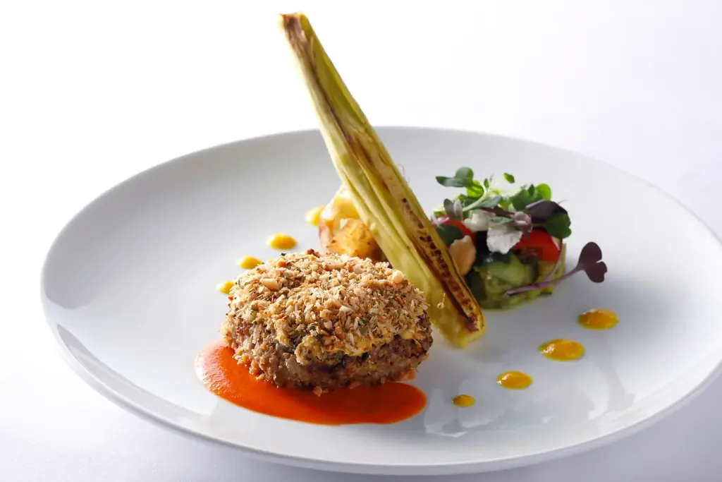 - 爽やかに香る山椒のソースが後味にアクセントを加え、彩り豊かな季節野菜が添えられます。