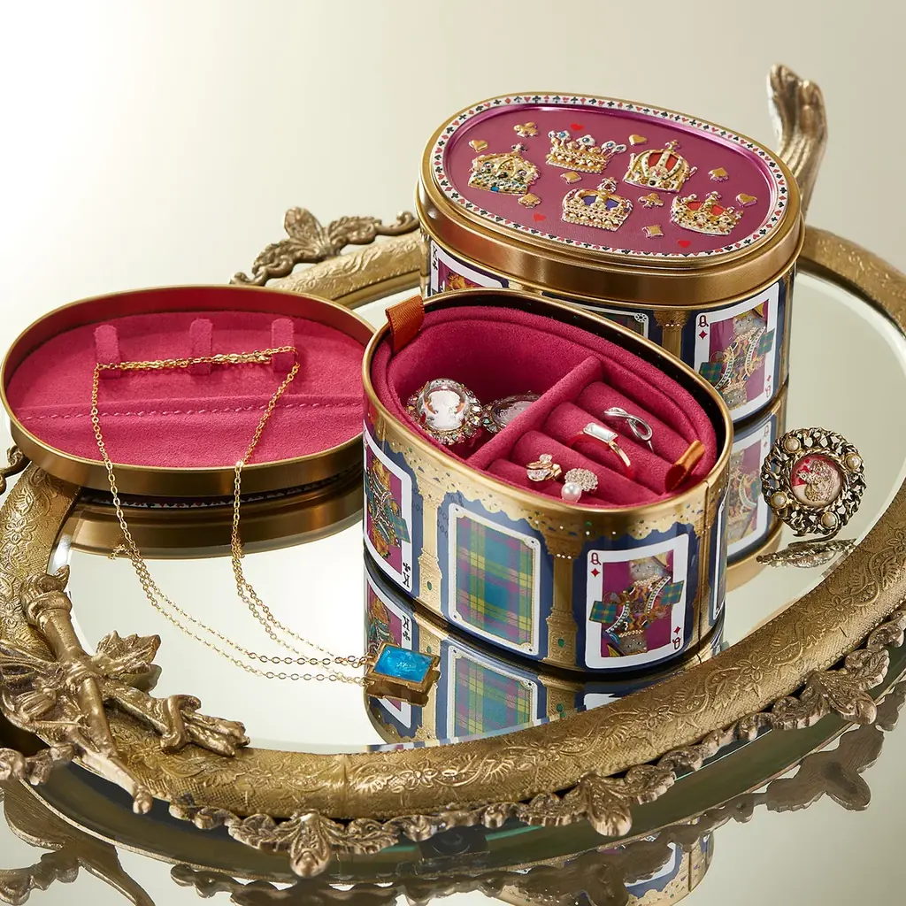 伊勢丹新宿店限定の『ネコのトランプ缶』には、赤いアクセサリー用ケース付きの「ネコの宝石」1個と、グルテンフリーの『ジャンドゥーヤのホワイトショコラ』5個が同梱されます。価格は本体価格2,200円(税込2,420円)です。