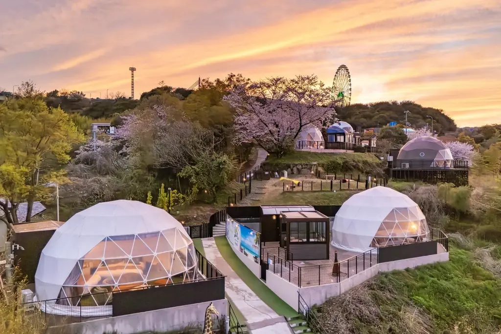「グランピングリゾート Awaji」は、株式会社グッディ(本社:大阪府大阪市)が兵庫県淡路市岩屋2604で運営する施設で、2021年ゴールデンウィークに開業した淡路島初のドームテント型グランピング施設です。施設は全棟が高台に配置され、各棟とも1棟独立仕様で、専用のシャワールームとトイレを備えるため高いプライバシーが確保されています。