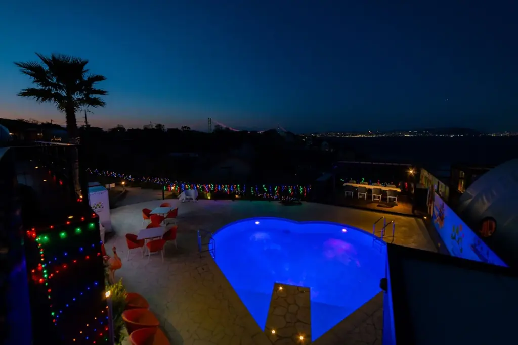 淡路島で夜景×オーシャンビュー、グランピング展望台とハート型プール誕生