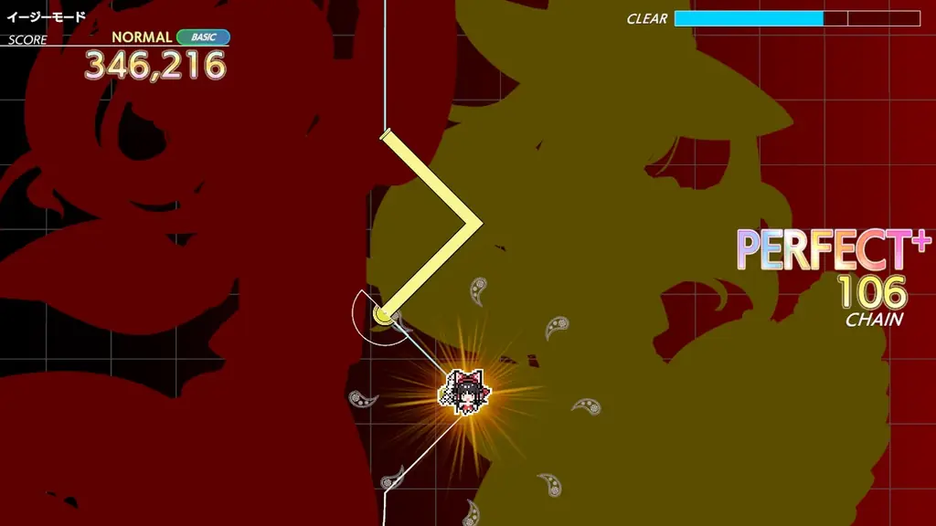 - アップデート適用後、すぐに「演奏」モードでプレイ可能です。東方スペルバブルで人気を博した曲のアレンジ版で、ボーカルに博麗霊夢のボイスをフィーチャーしています。