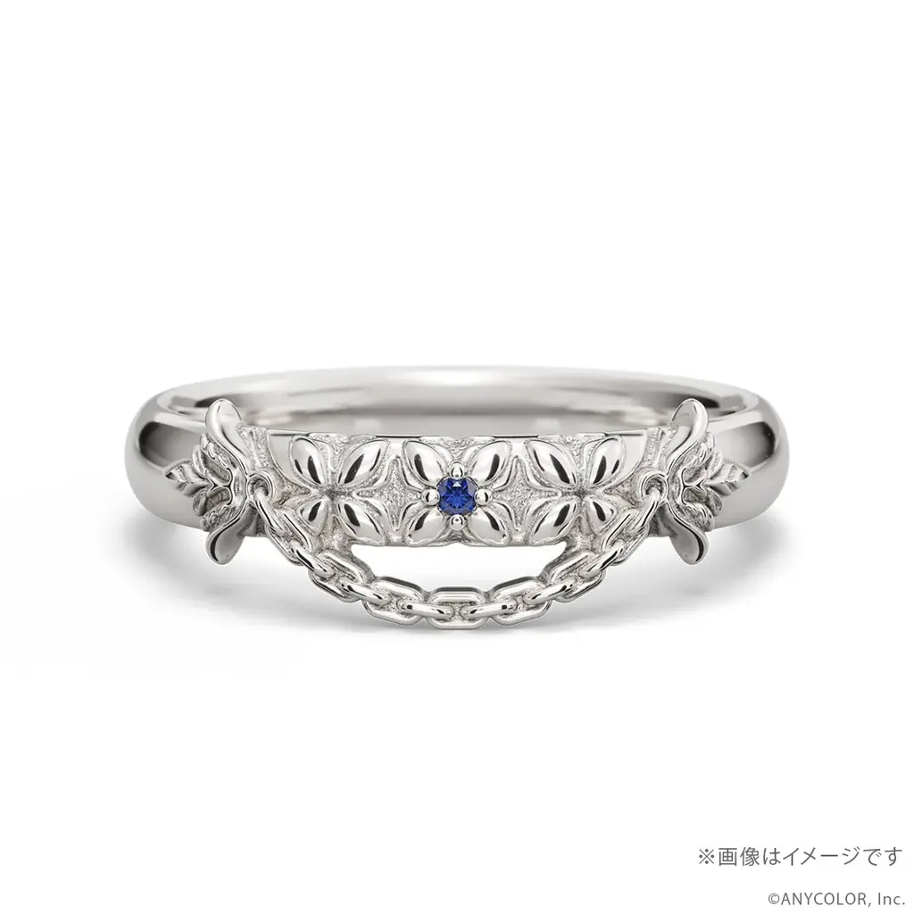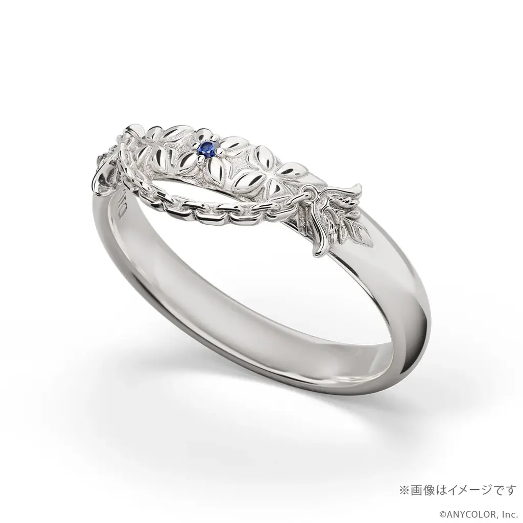 セラフ・ダズルガーデンさん監修のリングは、流れるようなラインで上品な印象を演出するデザインです。普段の衣装の象徴的な模様を取り入れ、動きのある造形で仕上げています。