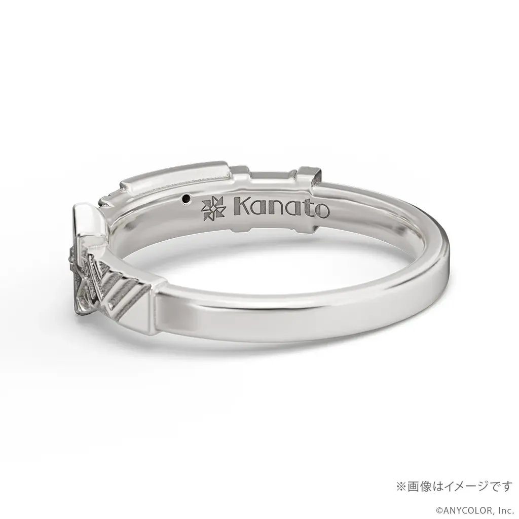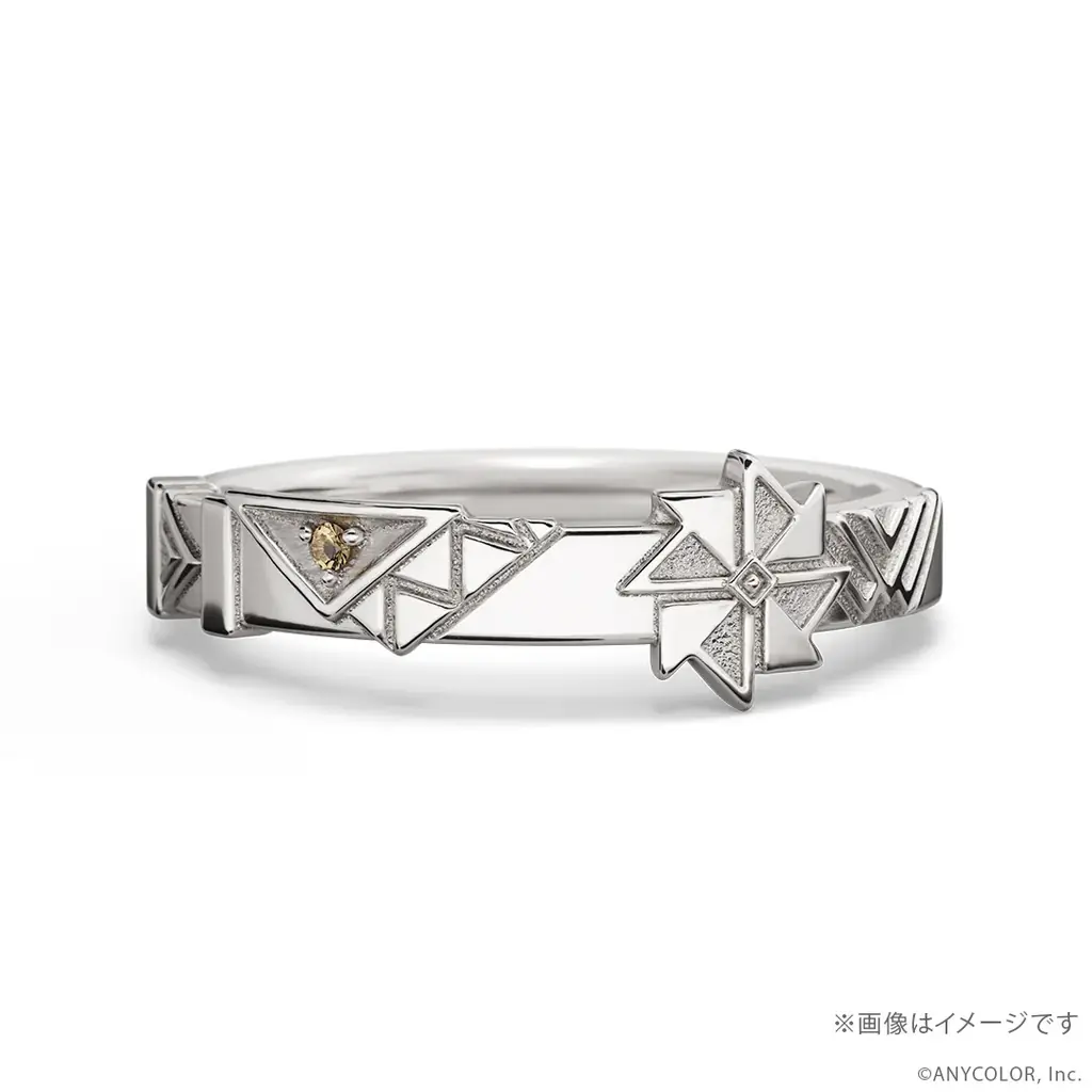正面に留めた宝石はシトリンで、太陽を象徴する石として【希望】【幸福】の意味があります。風楽さんの持ち前のポジティブさやリーダーシップをイメージした仕様です。内側刻印はモチーフアイコンと「Kanato」。素材はシルバー925で、別売りスタンドに飾ることも可能です。