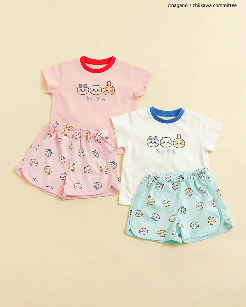 アニメちいかわリンガールームウェアは、リラックスタイムにも使えるルームウェアで男女で使える配色を用意しています。子どもが快適に過ごせるシルエットに配慮された設計です。