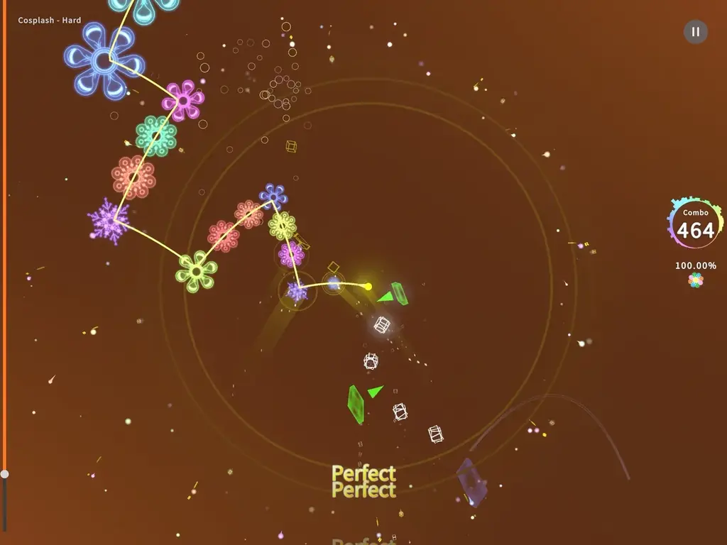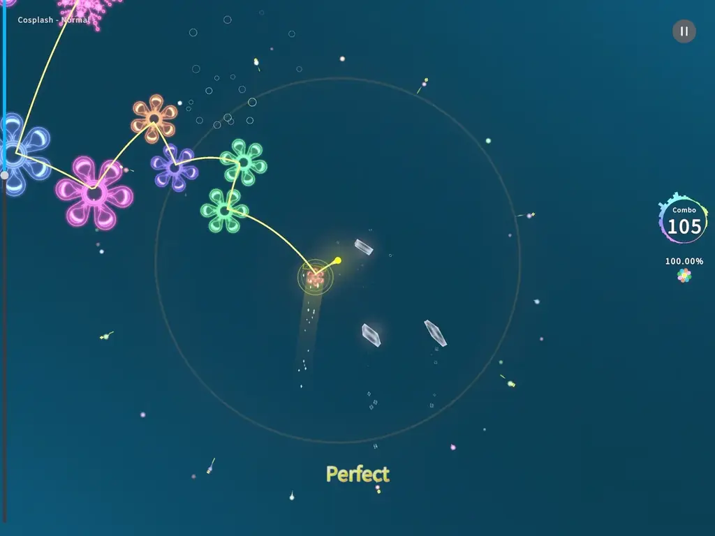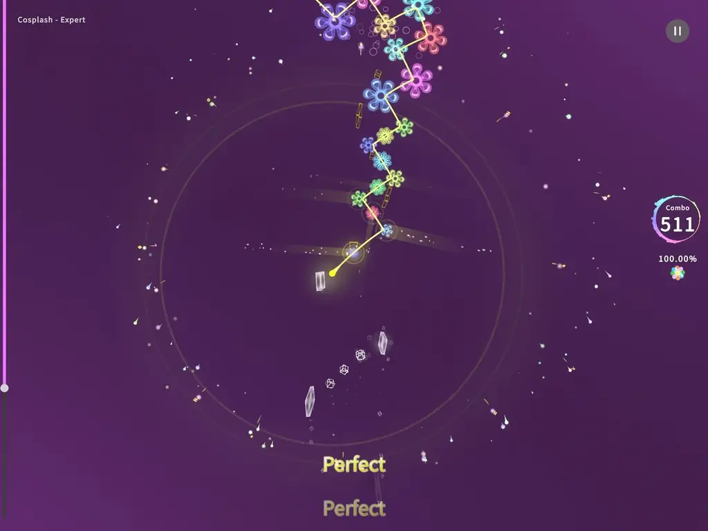- 多彩なノーツ: 反射ノーツ、貫通ノーツ、フリックノーツ、ホールドノーツなど。