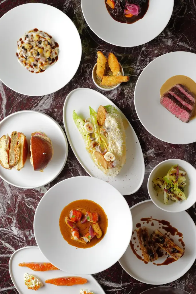 提供される代表的な品目には、オマール海老のビスク、ブリニを添えたスモークサーモン、ムース・オ・ショコラ、アフォガート、季節のフルーツを用いたデザートなどがあり、コーヒー・紅茶とともに楽しめます。
