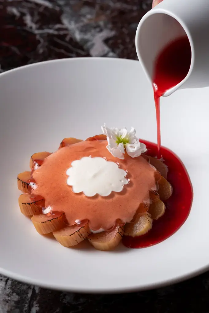メニューはアラン・デュカスの料理哲学に基づき、素材の恵みを生かした繊細な味わいとバランスを重視しています。セイボリーとデセールの両面で、視覚的な美しさと味わいの調和が追求されています。