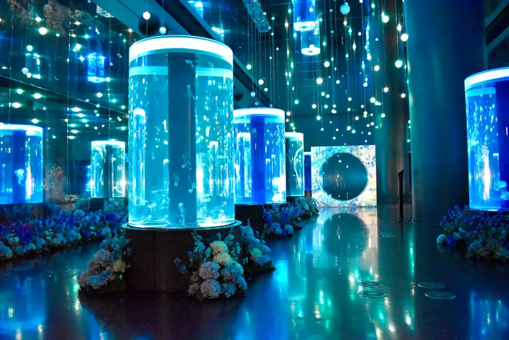 | 主要水槽(5点) | 象徴水槽:ヒトダマクラゲ×ネモフィラ/インドネシアシーネットル×蘭/ギヤマンクラゲ×アジサイ/サムクラゲ×デルフィニウム/アカクラゲ×アヤメ |