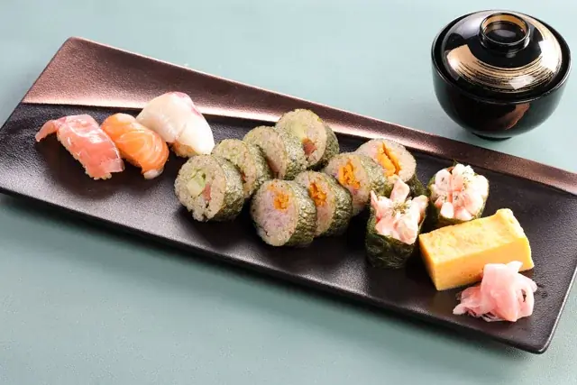 - にぎり寿司/巻き寿司:まぐろ、ぶり、いか、えびマヨ軍艦、とろたく、アボカドサーモンなど。