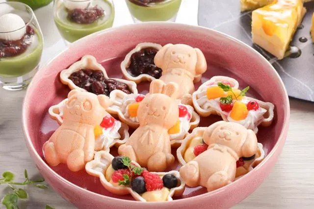 デザートは子どもから大人まで楽しめる構成で、ワッフルにフルーツや生クリームを添えた「ワッフル フルーツ添え」、マンゴーやパインを用いたケーキ類、抹茶ティラミスと白玉あずきなど和洋折衷のデザートが揃います。初登場となる「アニマルもなか」は動物型のもなかにソフトクリームをサンドし、好みのトッピングで仕上げる楽しいスイーツです。