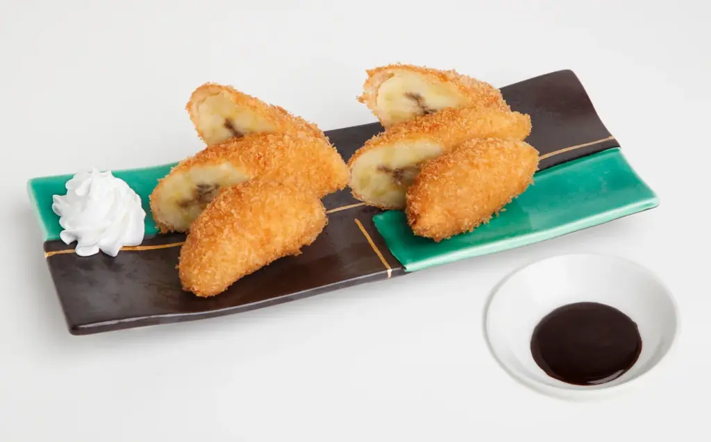 「甘熟王バナナのアイスクリーム天ぷら」を提供。名物のアイスクリーム天ぷらに甘熟王バナナを練り込んだアイスを使用し、チョコレートソースとスライスバナナを添えます。