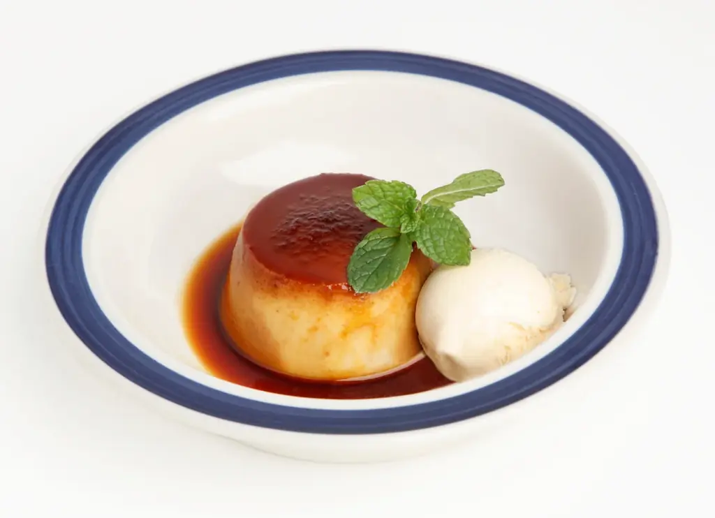 「甘熟王バナナプリン」を提供。甘熟王バナナを練り込んだプリンはカスタードのコクとバナナの甘さが融合した濃厚な逸品で、バニラアイスと合わせるとより味わいが引き立ちます。