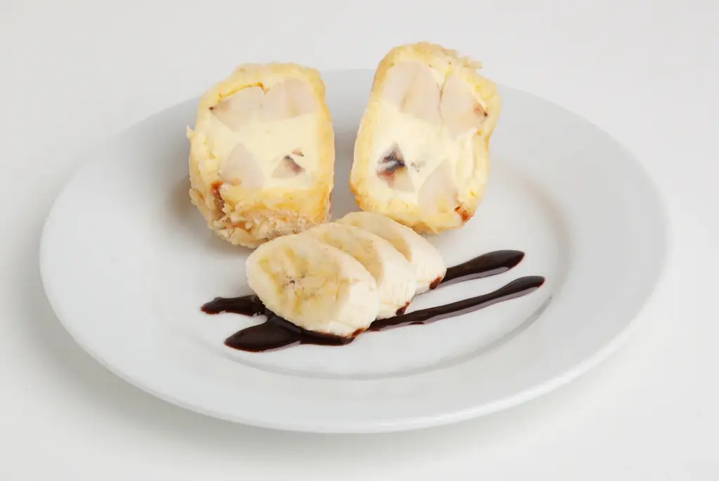 • メニュー:揚げバナナ(蓮餡入り、メレンゲ衣)