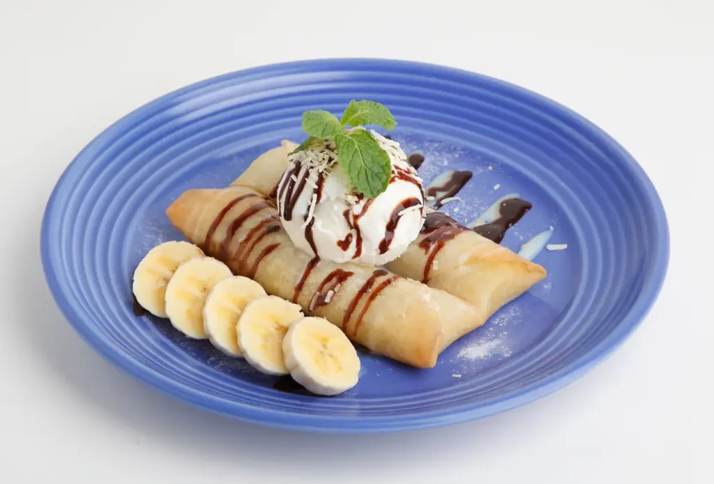 • メニュー:甘熟王バナナ揚げ春巻き ココナッツアイスのせ