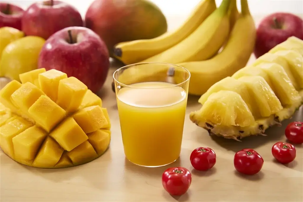 主な特徴 100%果実ミックスジュース、マンゴーとパッションフルーツを含む7種類の果実ブレンド、ビタミンC・B2・E・カリウム、砂糖不使用、1日分の果実※1
