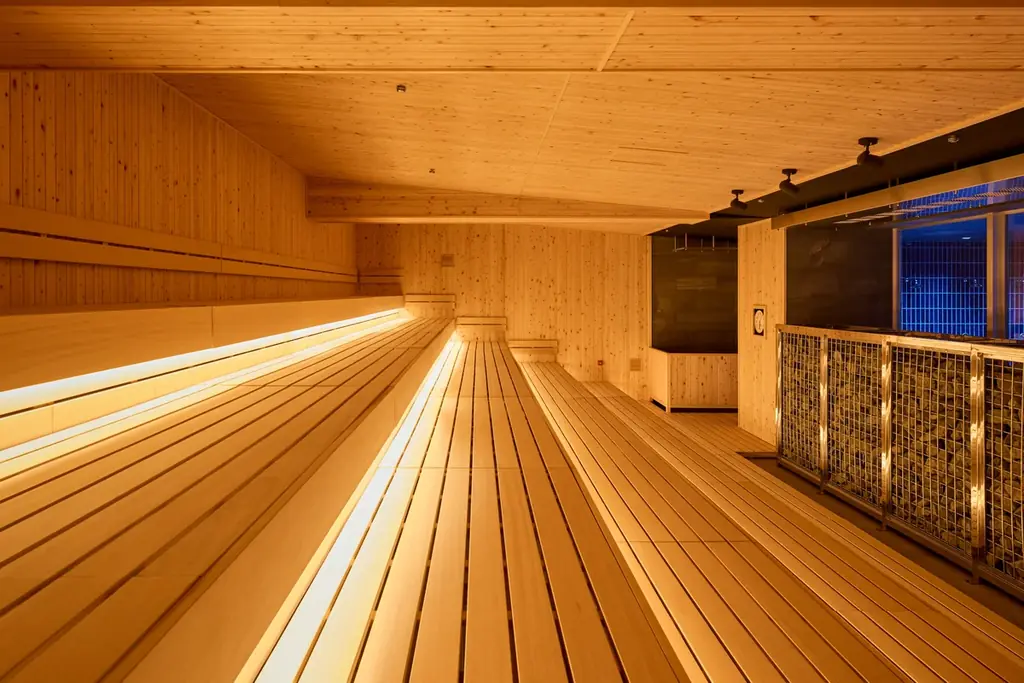 • 特徴:巨大ストーブ、オートロウリュ、水風呂(広さを確保)、100人入室可能なサウナ室