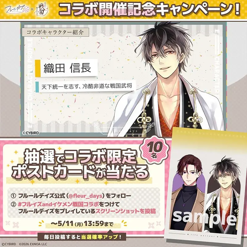 フルールデイズ×イケメン戦国、限定報酬とXでポストカード