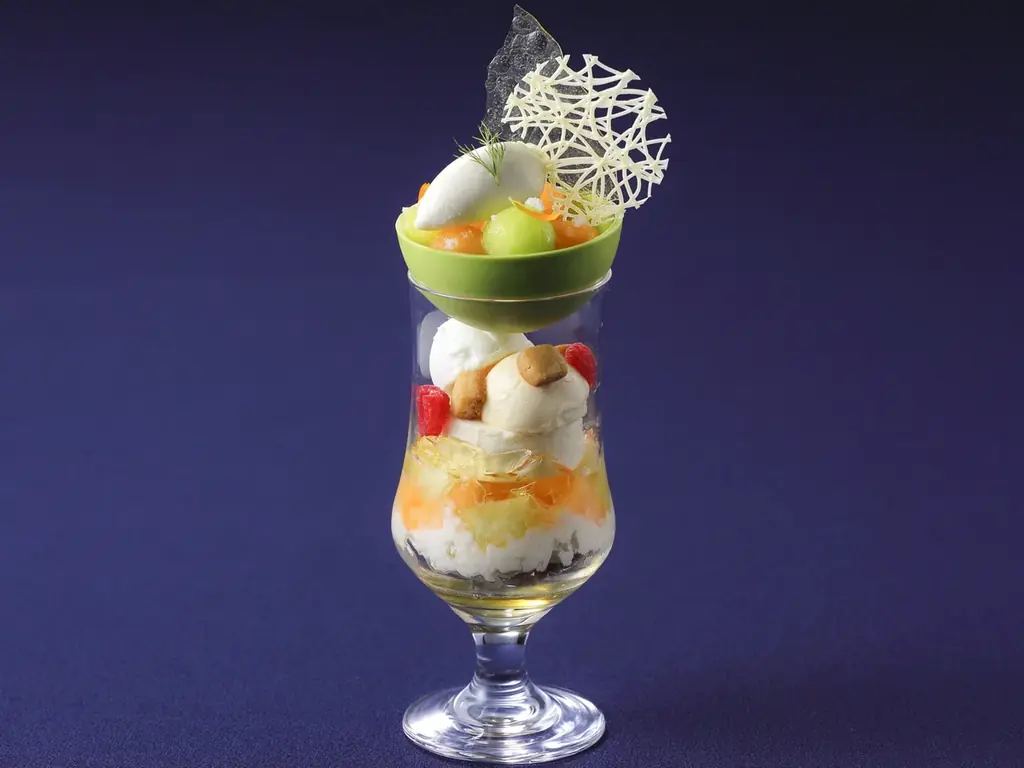 - ソーテルヌジュレが上品な奥行きを添える、大人のためのメロンパフェ